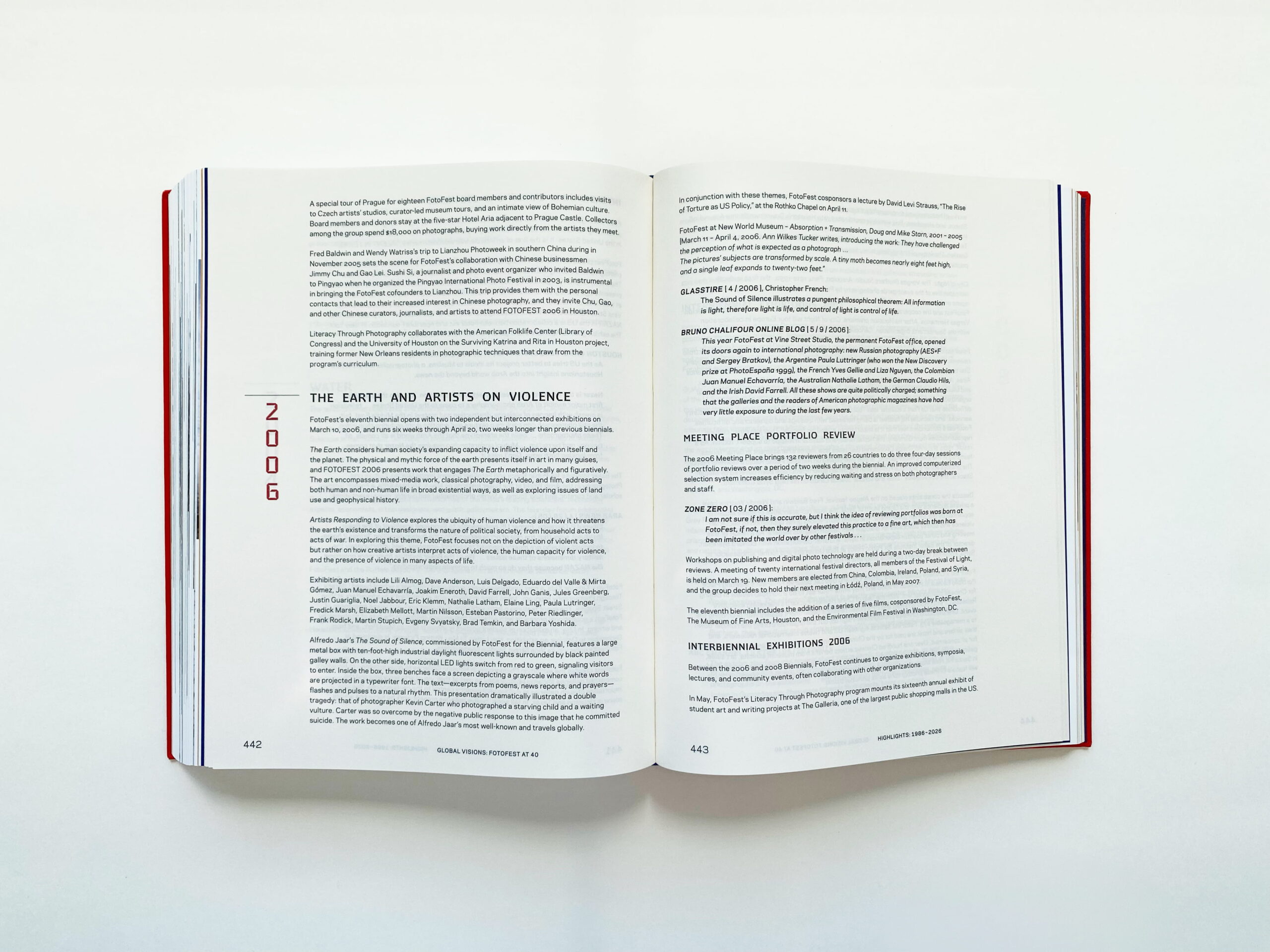Essays by FotoFest cofounder Wendy Watriss, curator and scholar Mark Sealy, and FotoFest executive director Steven Evans frame the book’s images through personal reflection, critical inquiry, and institutional history.