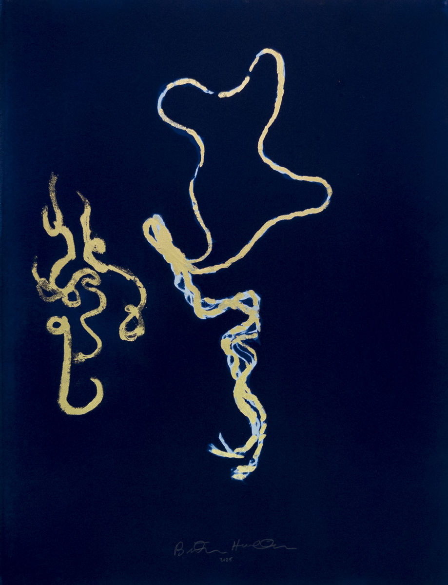 Cyanotype on paper with 24k gold leaf