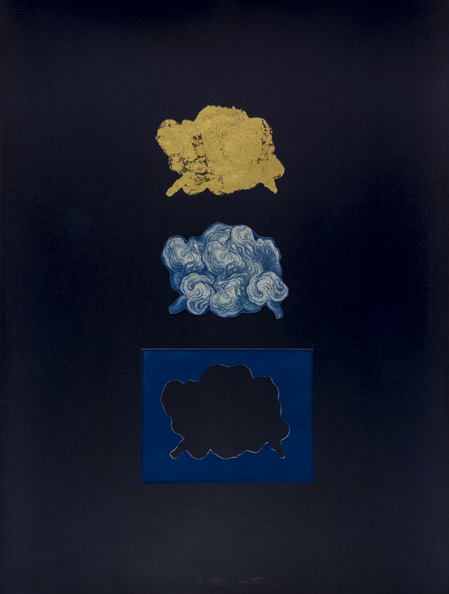 Cyanotype on paper, collage elements and with 24k gold leaf