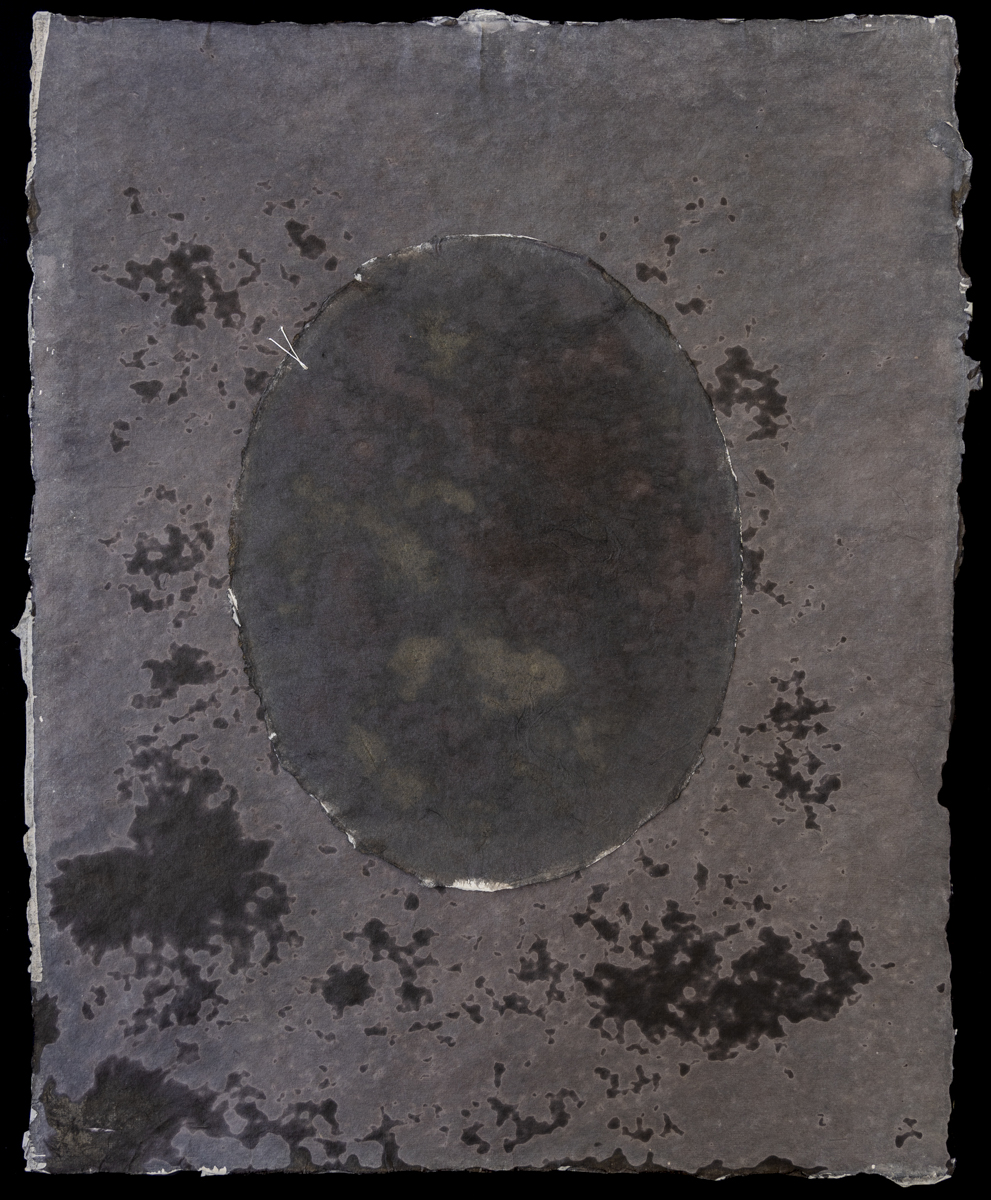 Unique gold-toned salted-paper on handmade abaca paper, vintage silver metal thread